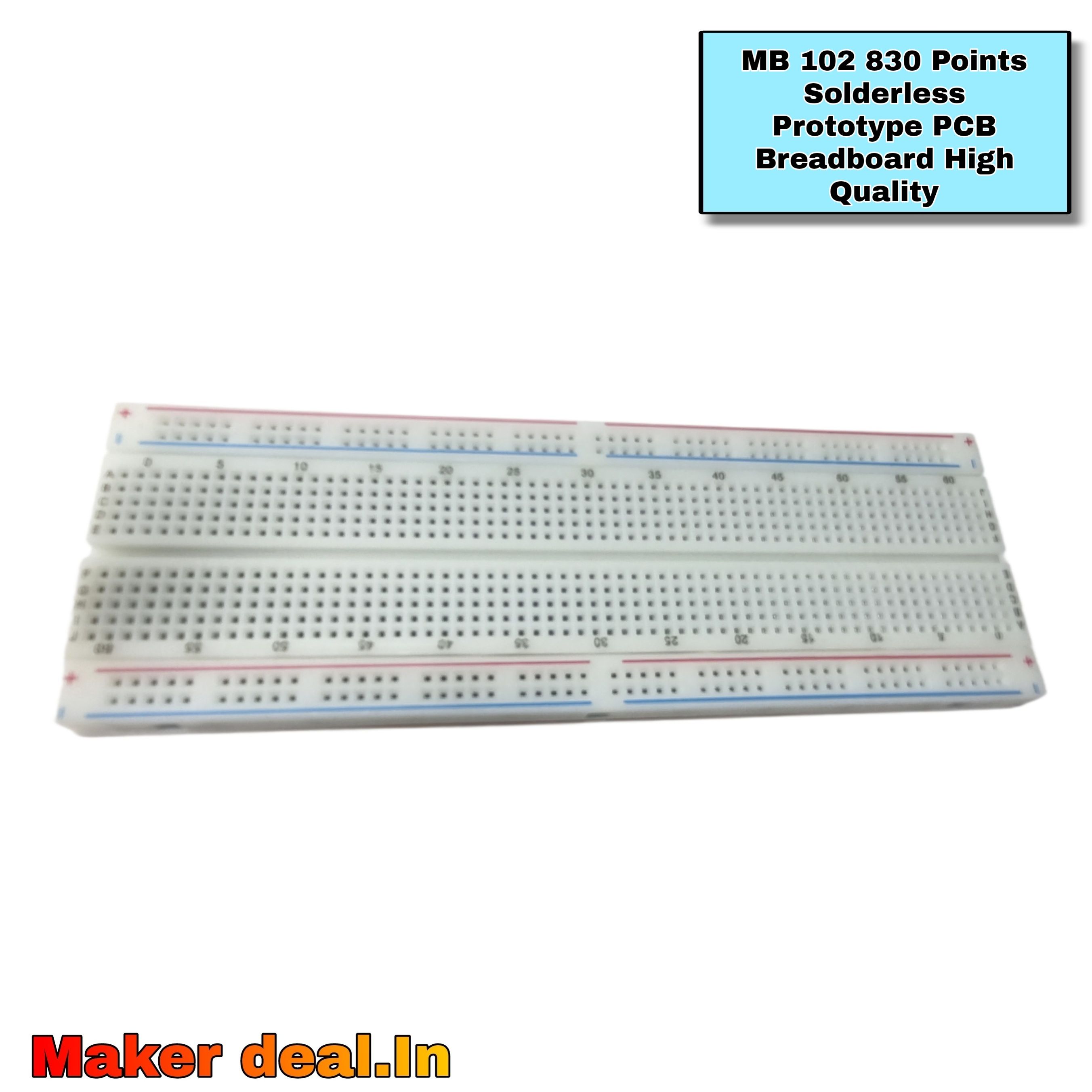 The MB-102 830-Point Solderless Prototype PCB Breadboard is a versatile and high-quality prototyping tool, designed for testing and building electronic circuits without permanent soldering. It features 830 tie points, allowing users to easily insert and remove components, making it ideal for rapid circuit testing, learning, and prototyping.