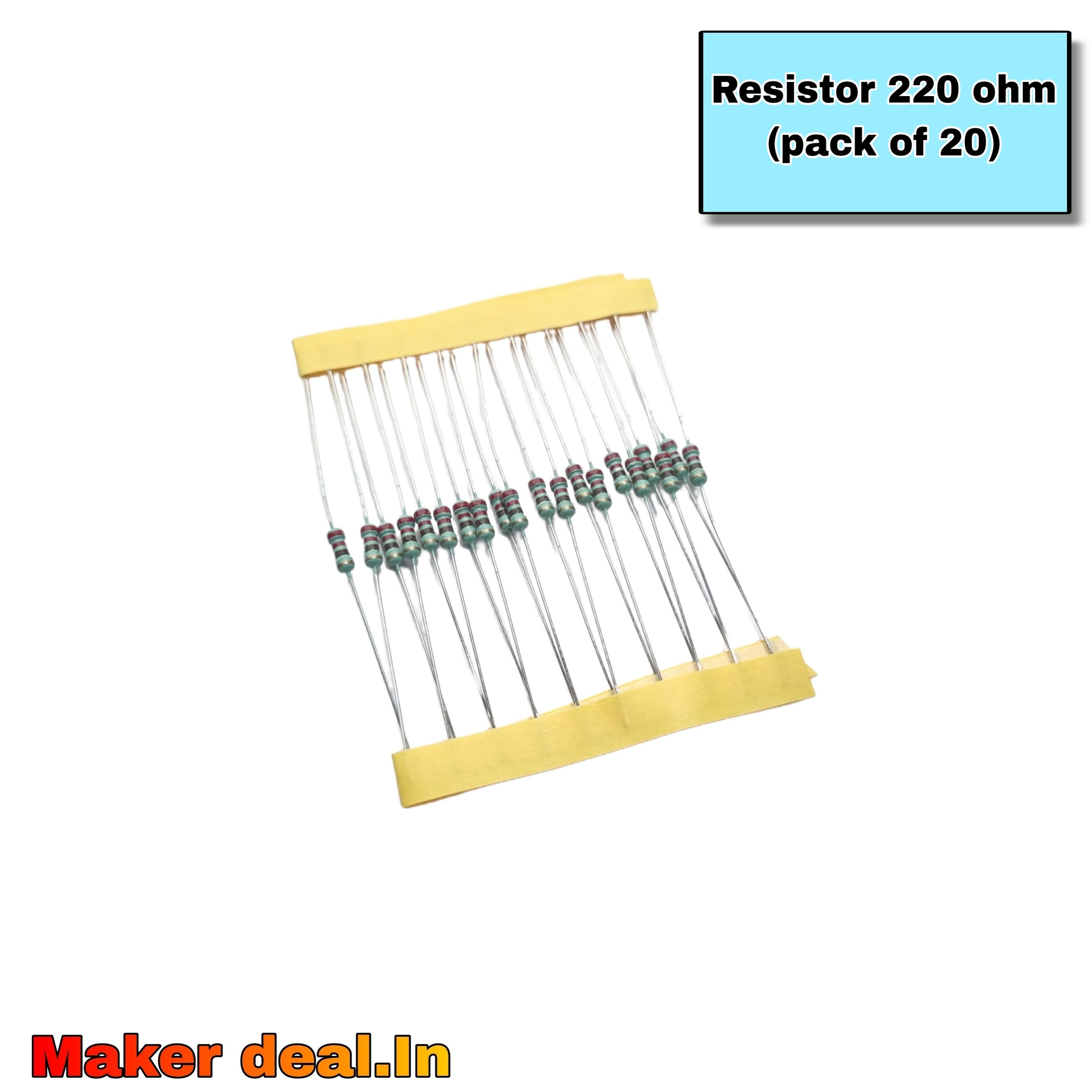 The 220Ω Resistor (Pack of 20) is a collection of fixed-value resistors designed for use in various electronic circuits. These resistors help regulate current flow, prevent excessive power dissipation, and protect components like LEDs and microcontrollers from damage.
